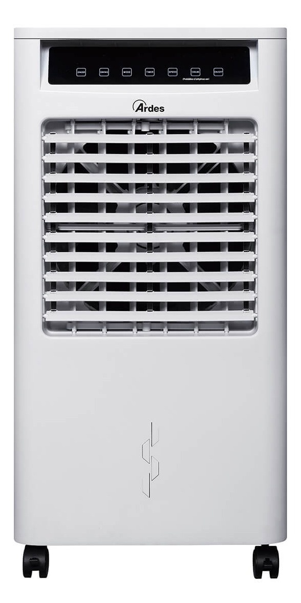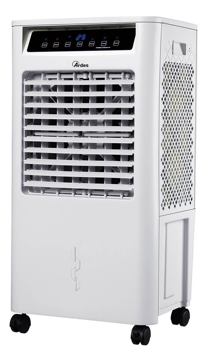 Rashladni uređaj. Hladi i ovlažuje. Rezervoar od 14 litara, dopunjavanje rezervoara odozgo. Funkcija jonizatora. Bežični daljinski upravljač. 3 brzine ventilatora. Funkcije prirodnog povetarca i režima spavanja. Tajmer od 12 sati. 2 kutije za led uključene. Kontrolna tabla na dodir. Opremljen točkićima. Isparavajući rashladni uređaji su svestrani, lagani i sa niskom potrošnjom energije. Mogu se koristiti bilo gde, ispuštajući struju vazduha sa oscilirajućim žaluzinama, kako bi ravnomerno distribuirali osvežavajući vazduh. Mogu raditi sa svežom vodom i ledom.