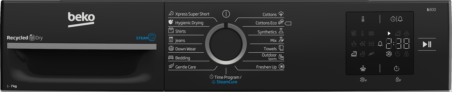 Pamuk Eco program za sušenje pamuka Sintetika Program za mešani veš Program za peškire Program za zimsku / sportsku odeću Program za osvežavanje Programi sa tajmerom GentleCare program Program za jorgane Program za jakne Program za farmerke Program za košulje 30 minuta Higijenski Ekspres super kratak program 14 minuta