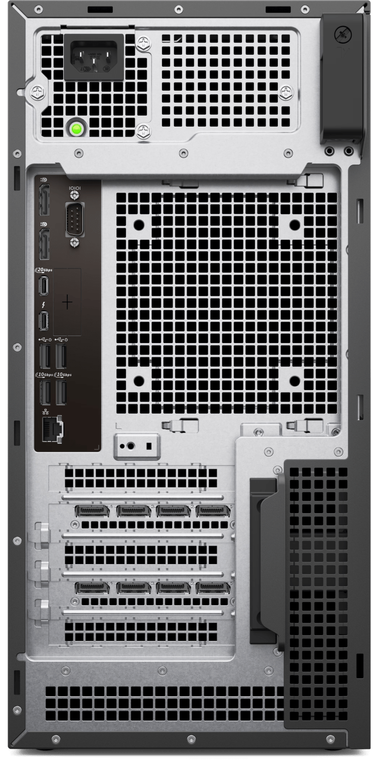 Priključci na zadnjem panelu: 1 x Thunderbolt 4 1 x USB-C 3.2 2 x USB-A 3.2 2 x USB-A 2.0 2 x DisplayPort 1.4a Priključci na prednjem panelu: 2 x USB-C 3.2 2 x USB-A 3.2 1 x 3.5 mm (izlaz i mikrofon) Slotovi za proširenje: 1 x PCIe Gen5 x16 slot (full height) 1 x PCIe Gen3 x4 slot (full-length, full height) 1 x PCIe Gen3 x4 slot (half-length, full height) 1 x PCIe Gen4 x4 slot (half-length, full height)