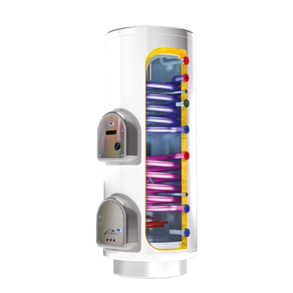 Voda se zagreva sa elektro grejačem i jednim izmenjivačem toplote.