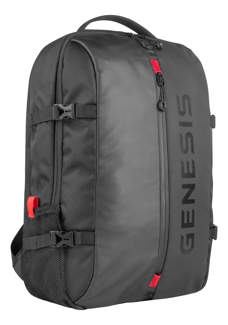 Ranac je izrađen od 1680D poliestera, materijala otpornog na nepovoljne uslove, sa dodatnim vodootpornim džepom na prednjoj strani.