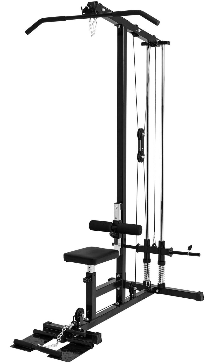 Lat mašina je nezaobilazna sprava u svakoj (kućnoj) teretani, koja omogućava efikasno vežbanje mišića leđa, grudi i ramena. Ova sprava marke Gorilla Sports ima dve šipke za povlačenje, ali možete menjati nastavke kako biste trenirali specifične mišićne grupe. Različitim hvatom možete uneti raznovrsnost u svoj trening, čineći ga efikasnijim.