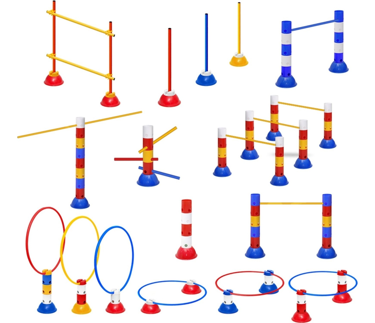 Sa ovim setom, korisnici mogu kreirati prepone različitih visina, provlačilice, markere, čunjeve, stubne prepone i kružne prepone, omogućavajući raznovrsnost u vežbama koje se mogu prilagoditi svim uzrastima i nivoima veštine. Fleksibilnost u kombinovanju elemenata omogućava korisnicima da prilagode treninge specifičnim ciljevima i potrebama, bilo da je fokus na poboljšanju brzine, agilnosti, snage ili koordinacije.
