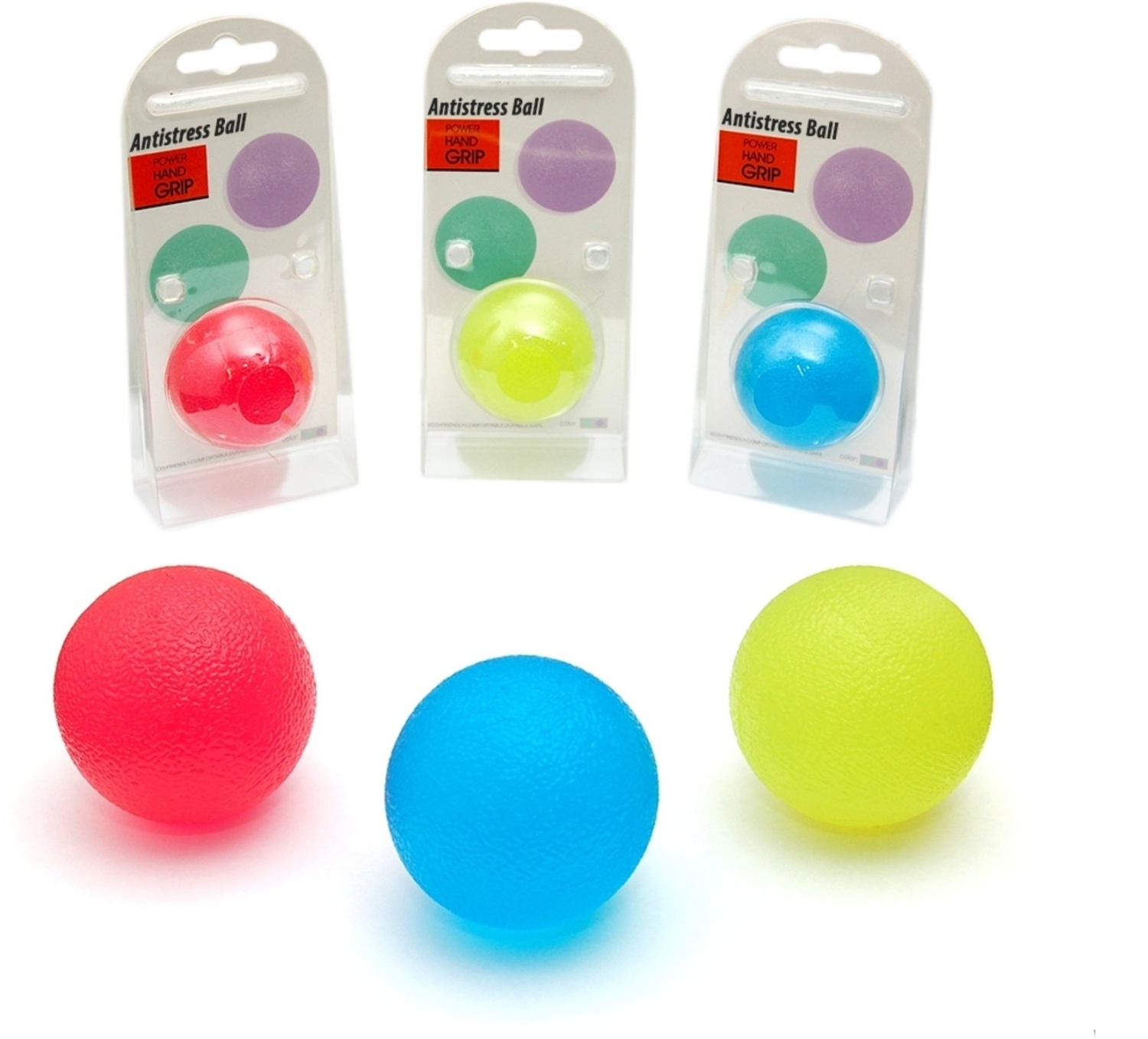 Set od tri loptice za šaku predstavlja efikasan alat za vežbanje i jačanje mišića šake i podlaktice, kao i za smanjenje stresa. Ovaj komplet sadrži loptice različite tvrdoće - mekanu, srednju i tvrdu, omogućavajući korisnicima da prilagode intenzitet vežbanja prema svojim potrebama i trenutnom nivou snage.
