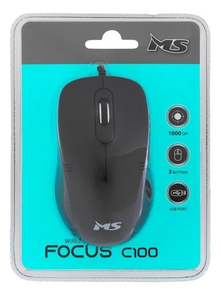 MS FOCUS C100 je optički žičani miš klasičnog dizajna u crnoj boji. Dolazi s gumiranim točkićem koji omogućuje jednostavno pomicanje. Senzor osetljivosti od 1000 DPI će zadovoljiti osnovne uredske potrebe i pristaće svakom stolu.