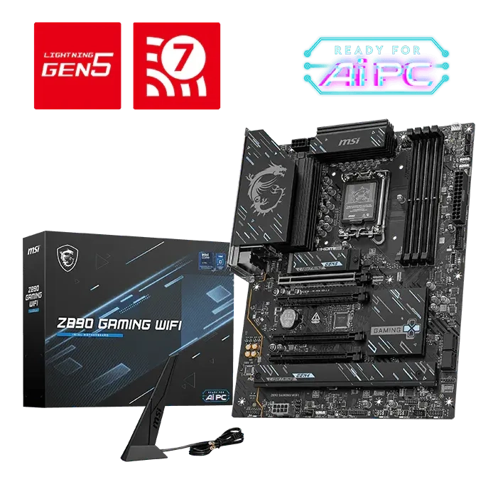 MSI Z890 GAMING WIFI je dizajnirana sa izdržljivim komponentama kako bi pružila odlično gejming iskustvo. Opremljena je Wi-Fi 7 i 2.5G LAN mrežom, Thunderbolt 4 podrškom, PCIe 5.0 rešenjima, dodatnim PCIe napajanjem i ekskluzivnim EZ DIY funkcijama, te je spremna za 24/7 neprekidno gejming korišćenje sa procesorima Intel Core Ultra. MSI matične ploče su dizajnirane sa naprednim hardverom i tehnologijama, pružajući pouzdanu podršku za zahtevne računarske zadatke poput gejminga i veštačke inteligencije. Pored toga, MSI uvodi AI funkcije u MSI Center i BIOS, čineći korišćenje sistema jednostavnijim i lakšim nego ranije. 12+1+1+1 Duet Rail Power System: Oslobodite i održavajte maksimalne performanse uz agresivan VRM dizajn zasnovan na digitalnom sistemu napajanja procesora. Kombinacijom 8 + 8-pin konektora za napajanje i ekskluzivne Core Boost tehnologije, matične ploče iz MSI Gaming serije spremne su da izdrže velika opterećenja tokom gejminga. Novi EZ PCIe Clip II, smešten na prvom slotu, koristi mehanizam sa povratnom oprugom koji omogućava lako uklanjanje grafičke kartice pritiskom na repasti osigurač jednim prstom. Zahvaljujući ovom promišljenom dizajnu, korisnici mogu jednostavno demontirati grafičku karticu čak i u skučenim prostorima kućišta. Produženi hladnjak povećava površinu za odvođenje toplote i održava stabilne performanse pri velikim opterećenjima. M.2 Shield Frozr: Unapređeno M.2 termalno rešenje pomaže da M.2 SSD ostane zaštićen i obezbeđuje izuzetne performanse. Moguća su odstupanja karakteristika proizvoda u zavisnosti od revizije matične ploče CPU: Supports Intel® Core™ Ultra Processors (Series 2) Memory: Supports Intel® POR Speed and JEDEC Speed Supports Memory Overclocking and Intel® XMP 3.0 Supports Dual-Controller Dual-Channel mode Supports Non-ECC, Un-buffered memory Supports CUDIMM Onboard Graphics: Support HDMI™ 2.1, maximum resolution of 4K 60Hz Support DisplayPort 1.4, maximum resolution of 4K 60Hz 1x Type-C DisplayPort: Thunderbolt™ 4 port, supporting DisplayPort 2.1 with UHBR20 over USB Type-C, with a maximum resolution of 4K@120Hz / 8K@60Hz Expansion Slots: 4x PCI-E x16 slot PCI_E1 Gen PCIe 5.0 supports up to x16 (From CPU) PCI_E2 Gen PCIe 3.0 supports up to x1 (From Chipset) PCI_E3 Gen PCIe 4.0 supports up to x4 (From Chipset) PCI_E4 Gen PCIe 4.0 supports up to x4 (From CPU) Storage: Supports RAID 0, RAID 1, RAID 5 and RAID 10 for SATA storage devices Supports RAID 0, RAID 1 and RAID 5 for M.2 NVMe storage devices Onboard Thunderbolt: 1x Thunderbolt4 ports (Rear) Supports up to 40Gbps transfer rate with Thunderbolt devices Supports up to 20Gbps transfer rate with USB4 devices Supports up to 10Gbps transfer rate with USB 3.2 devices Supports up to 5V/3A,15W power charging Each port can daisy-chain up to three Thunderbolt 4 devices or five Thunderbolt 3 devices Supports up to 8K display LED Feature: 4x EZ Debug LED