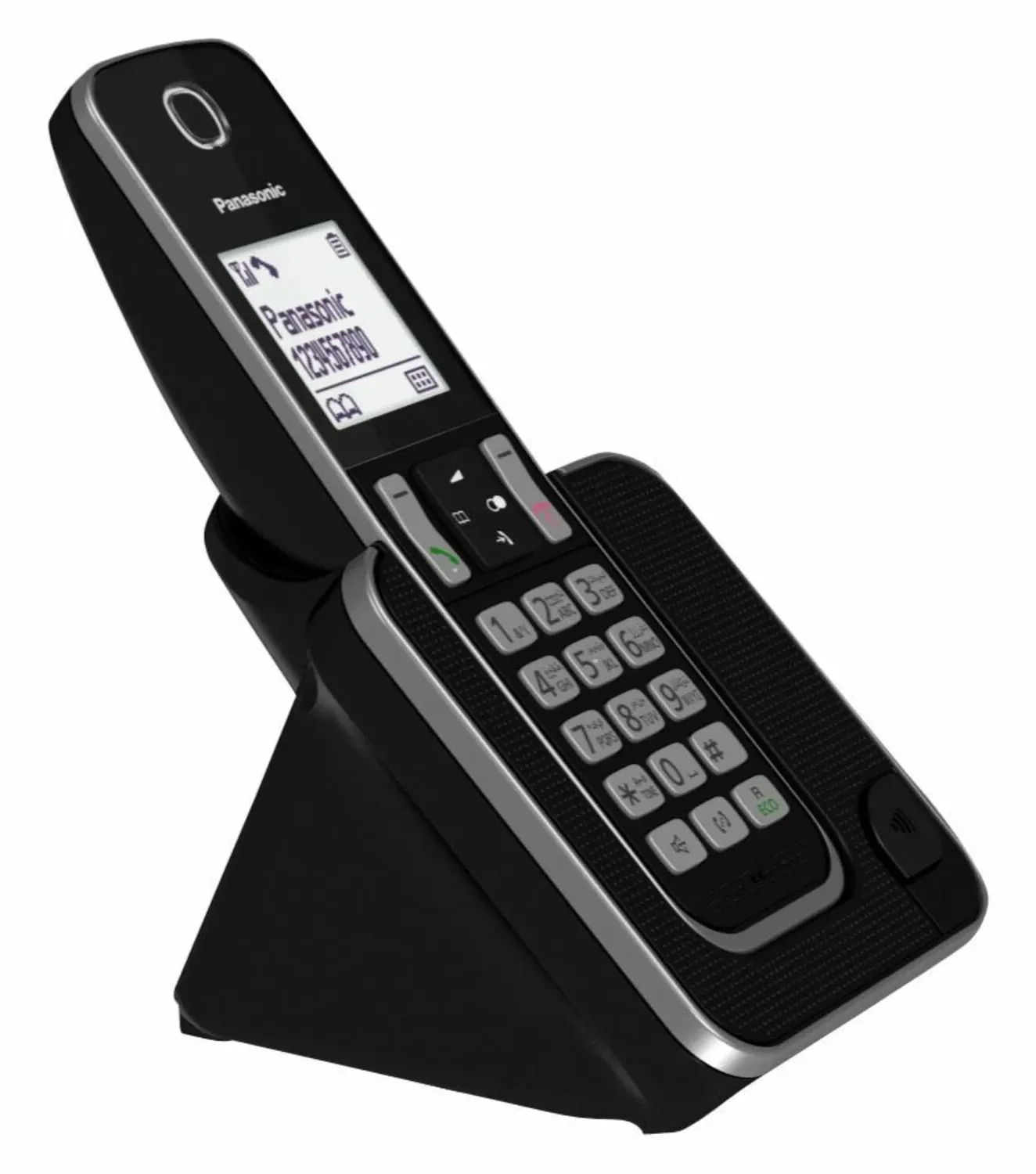Panasonic KX-TGD310FXB Bežični telefon ima belo osvetljeni grafički displej od 1,8 inča rezolucije 103 x 65 px, sa tehnologijom smanjenog zračenja ECO dect. Dugmad, pozicija LCD-a i drugi elementi ovog kompaktnog dizajna su pažljivo dizajnirani na osnovu ergonomije, kako bi omogućili instalaciju na različitim mestima. Jednostavna instalacija, jeftino održavanje i privlačan dizajn telefona kako bi se uklopio u eneterijer kancelarije ili vašeg doma.
