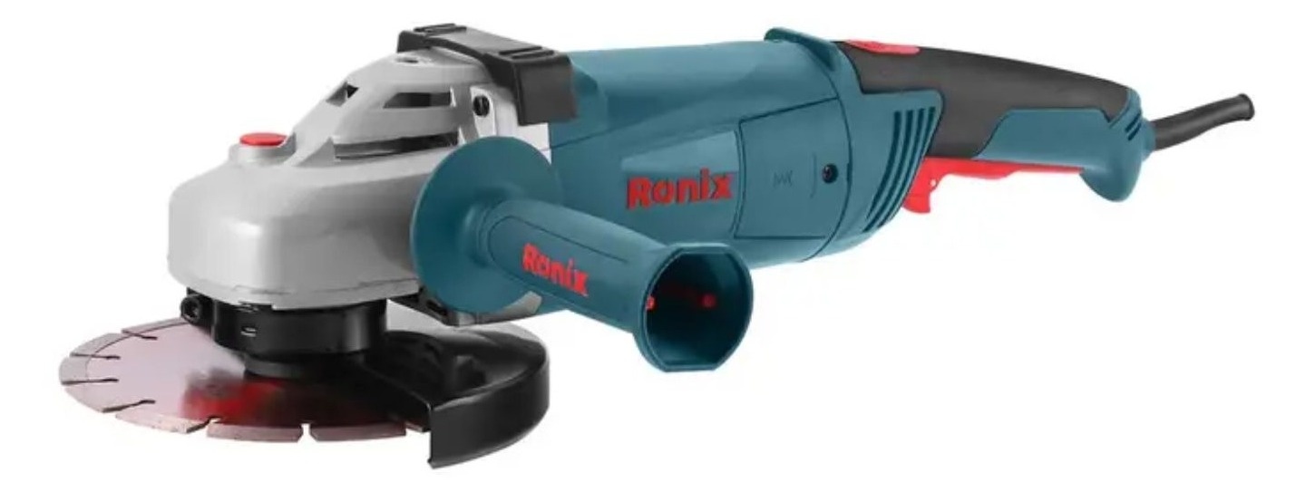 RONIX Ugaona brusilica 2H 3211 CB 2350W/180mm - Snažan motor visoko otporni od 2.350W osigurava maksimalnu efikasnost pri teškim poslovima - Ergonomska ručka sa 3 položaja smanjuje vibracije i umor tokom dugotrajnog rada - Rotirajuća glavna ručka omogućuje brzi rad pod različitim uglovima i poboljšava udobnost i kontrolu korisnika - Direktni sistem cirkulacije vazduha hladi motor za pouzdanije performanse i veću otpornost na preopterećenje - Ležajevi sa zaštitom od prašine osiguravaju dug vek trajanja motora i čine ga glatkim u radu - Brza promena zaštite diska omogućuje korisniku da postavi zaštitu pod različitim radnim uglovima - Jednostavan i brz mehanizam za zamenu četkica - Novi sistem zaključavanja pina za brzu i jednostavnu zamenu diska i sigurnosni mehanizam - Prekidač sa zaštitom protiv prašine koji smanjuje prodor prašine, posebno u uslovima rada sa malterom