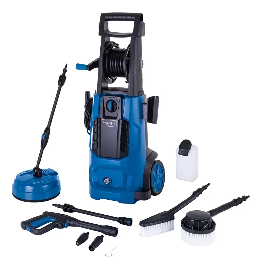 Scheppach HCE2800 električni perač visokim pritiskom savršen je dodatak za kuću, dvorište ili gradilište. Snažni motor snage 2400 W stvara maksimalni pritisak od 180 bara, čime pouzdano uklanja tvrdokornu prljavštinu, alge ili mahovinu sa prilaza, površina, terasa, vozila ili vrtnog namještaja. Automatsko uključivanje i isključivanje motora dodatno smanjuje potrošnju vode i energije. Na integrisanom bubnju crijevo se može lako odložiti