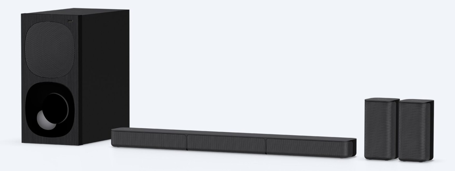 Zadnji zvučnici i spoljašnji niskotonac u kombinaciji sa 3-kanalnim soundbarom pružaju dinamičan bioskopski zvuk. Okružujući zvuk visokog kvaliteta sa razvojenih 5.1 audio kanala uz Dolby Digital. Audio karakteristike: Tip pojača: S-Master, Dolby Audio, Noćni režim, Glasovni režim. Dimenzije glavne jedinice: 76 x 5.2 x 8.6 cm Dimenzije niskotonca: 19.2 x 38.7 x 34.2 cm Masa glavne jedinice: 2 kg Masa niskotonca: 6.9 kg