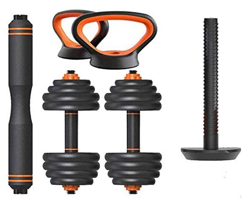 Višenamenska bučica 4 u 1. Podrška za bučice / teg / rusko zvono / ne samo da troši kalorije, već poboljšava snagu i tonus mišića. Težinu možete prilagoditi prema svojim potrebama i mogućnostima, a takođe uštedeti novac i vreme na odlaske u teretanu. FED bučice su napravljene od mešavine cementnog gvožđa i peska, izuzetnog kvaliteta, netoksične i bez mirisa. Ne morate da brinete o neprijatnim mirisima tokom vežbanja, jer su očišćene od suvišnih derivata i ne utiču na svežinu vazduha u sobi. Iz sigurnosnih razloga obložene su materijalom protiv klizanja u području drške, matica je otporna i dodatno zaštićena tako da ne treba da razmišljate da li će popustiti. Metalna šipka obmotana je sa 2cm prijatne pene za lakše korišćenje, dok su tegovi sa obe strane šipke podesivi prema vašoj želji. Zvono teg možete koristiti sa jednom ili obe ruke u zavisnosti od težine koju podesite. Drške od tega pogodne su za korišćenje prilikom sklekova.